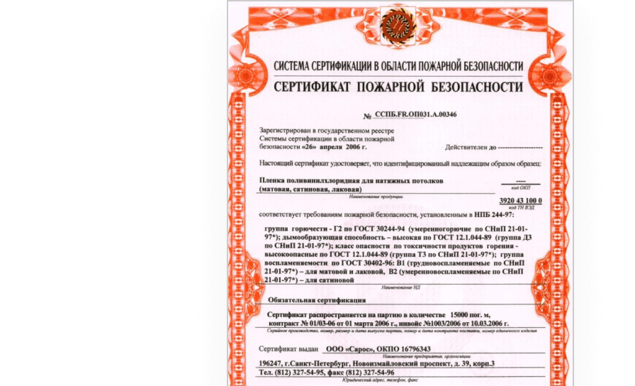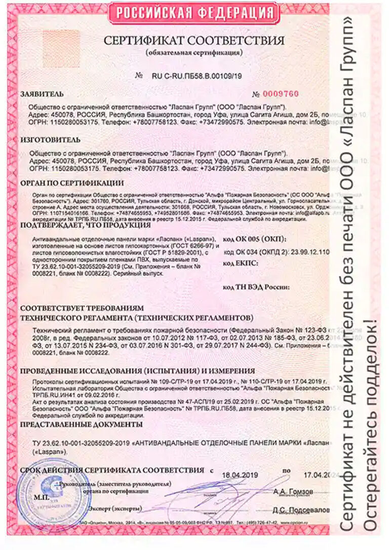 Сертификат соответствия требованиям пожарной безопасности Г1 №C-RU.ПБ58. В.00109/19