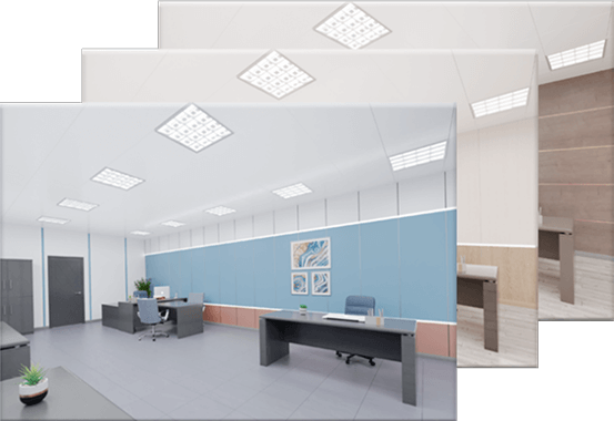 - Подвесные потолки различных цветов и размеров