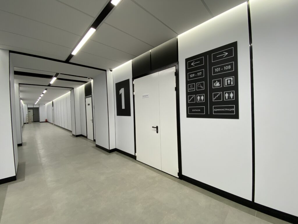 Качественная реализация стильных интерьеров производится за счет собственного производства стеновых панелей, межкомнатных дверей и систем подвесных потолков.