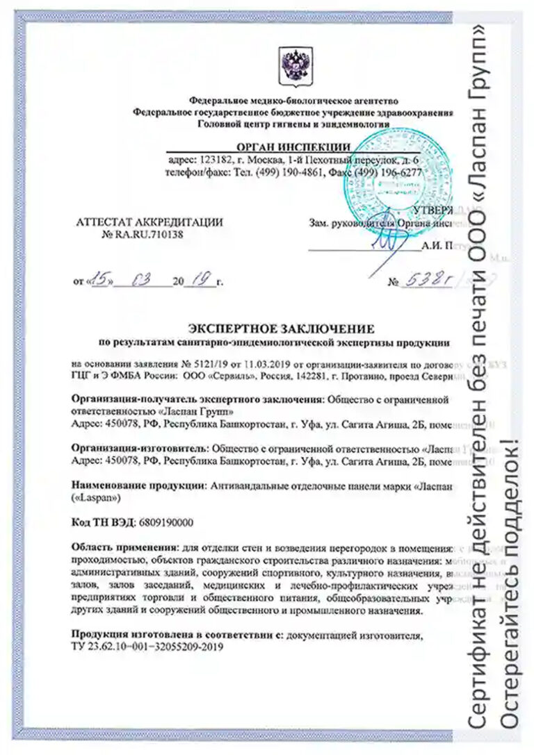 Санитарно-эпидемиологическое заключение №RA.RU.710138