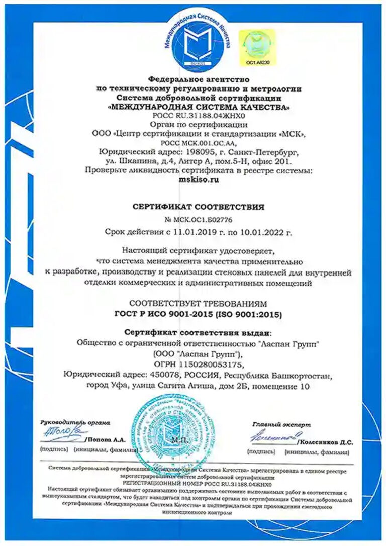 Сертификат соответствия системе менеджмента качества №MCK.OC1.B02776